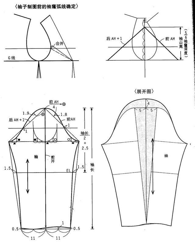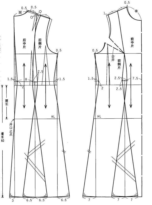 ③尺寸分配:胸围加放量2,一半制图1,后侧缝和前侧缝各0.5。