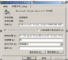 2. 通过以下操作了解用于启动VB集成开发环境的快捷方式中所指定的可执行文件。