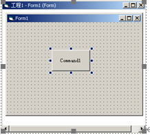 (1)单击选中工具箱中的命令按钮(CommandButton),然后在窗体上用鼠标拖动的方式添加一个命令按钮控件Command1,如图1-4所示。