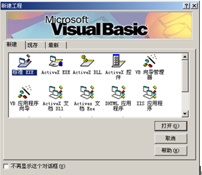 (1)单击“开始”按钮,然后在“开始”菜单中依次单击“程序”→“Microsoft Visual Basic6.0中文版”→“Visual Basic6.0中文版”选项,出现如图1-1所示的“新建工程”对话框。
