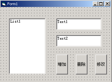例题4:如图所示,完成如下操作:①利用Text1给List1添加项目②用Text2给List1选中的内容修改③删除选中的项