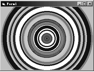 本程序运行时,可以自动产生多个不同大小、颜色各异、宽度不一的圆。程序运行结果如图12-2所示。在窗体加载时,使用用户自定义坐标,重新设置窗体的坐标系统,并向窗体中添加定时器控件Timer1,设置其Interval属性值为100。