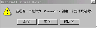 2. 选定该按钮,单击工具栏上的“复制”按钮,再单击工具栏上的“粘贴”按钮,在弹出的如图13-3所示的确认对话框中,单击“是”按钮。多次使用“粘贴”命令,向窗体上添加9个按钮,并将它们摆放整齐。